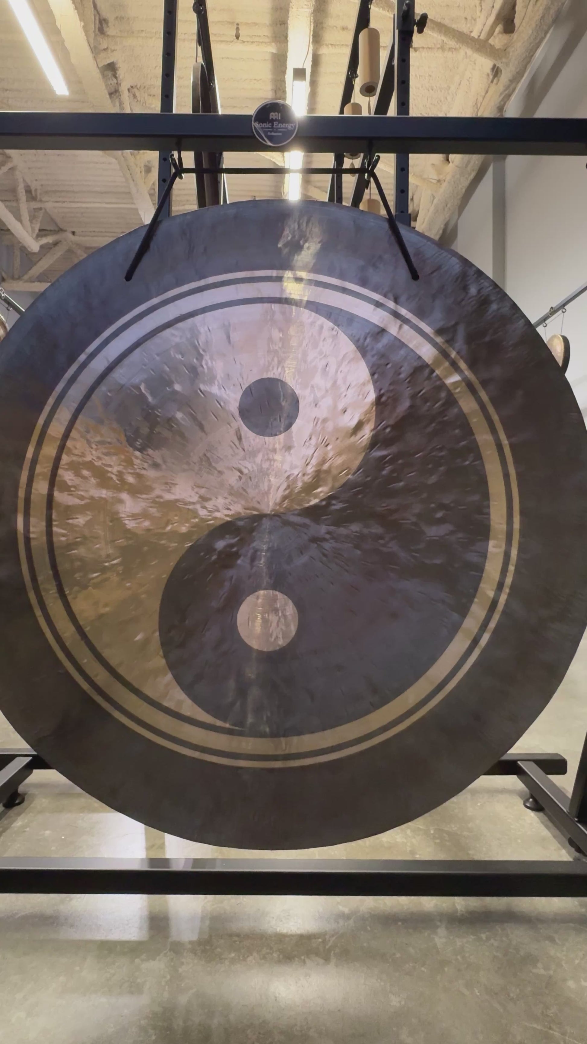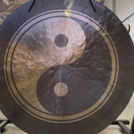 Made from high quality B20 bronze, this Chinese wind gong is fully lathed and polished to a brilliant finish. Dark patina is added on the edge followed by a laser etched the Yin Yang symbol.
