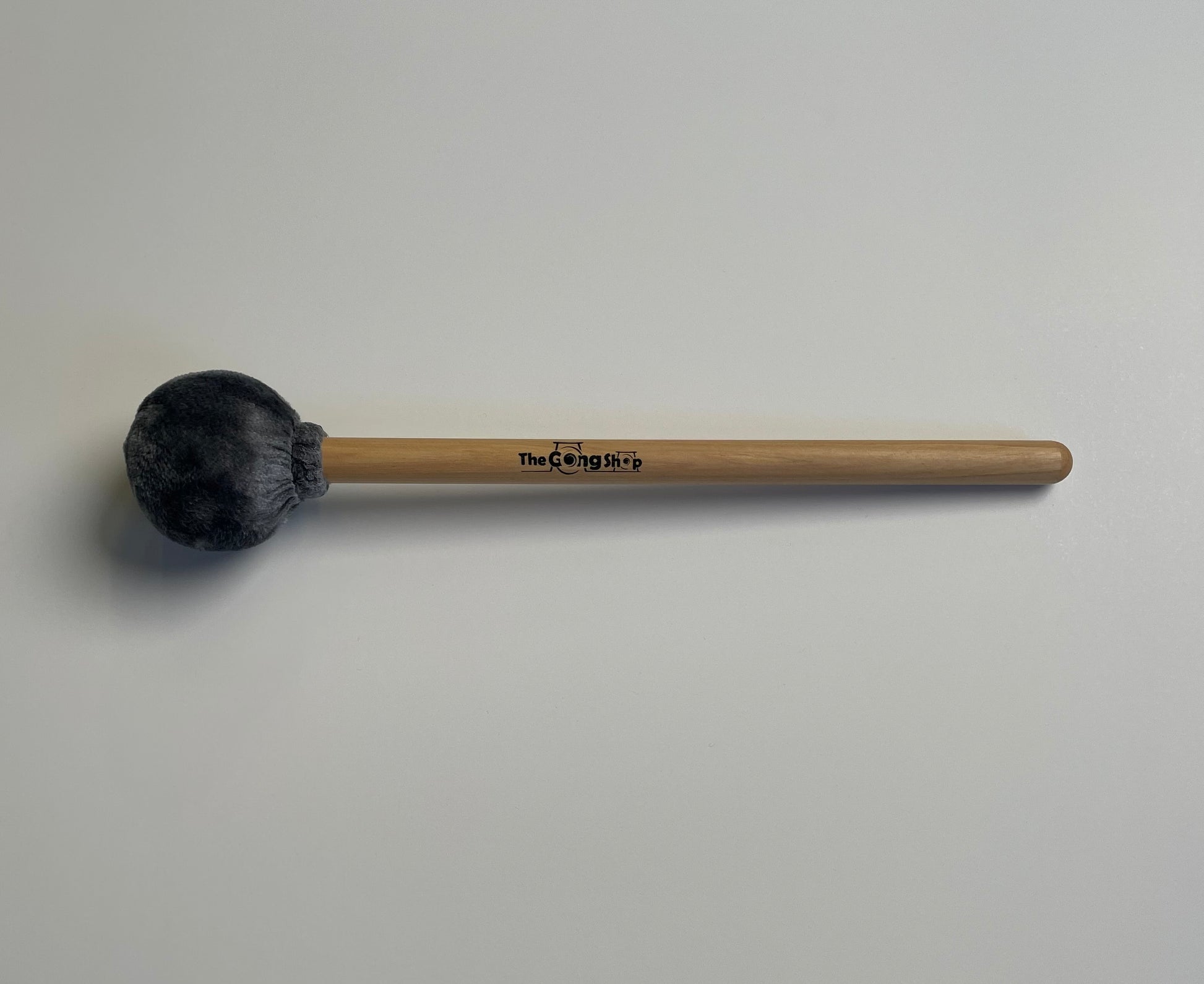 Light, soft ball-shaped core covered in felt and fleece on a short 5/8” thick hickory handle (12” length). This mallet produces a full, luscious sound. It is much softer than the small and medium sticks and brings out much lower frequencies. It is surprisingly resilient off the gong and results in a slow, rich blossom. A smaller version of the RSMS-M.