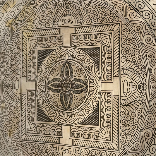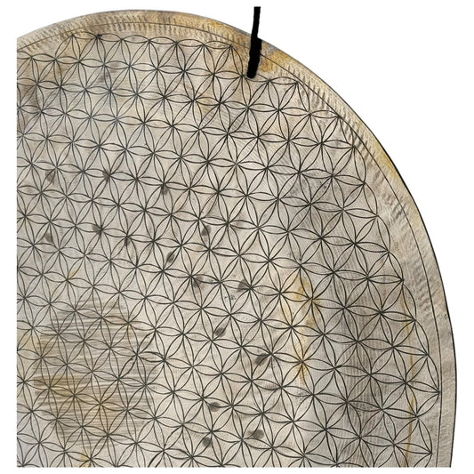 22" Indian Wind Gong - Flower of Life - Golden Etched